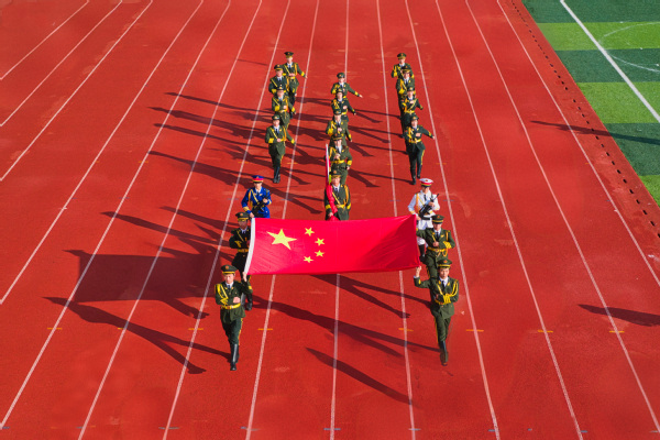 图为国旗队 摄影:金天 贺熊邹