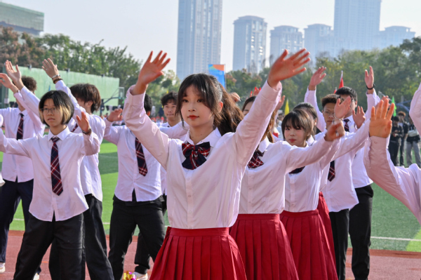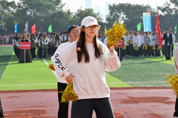 其中,国际教育学院方队中9名来自马来西亚、伊拉克、利比里亚等国家的留学生格外吸睛,他们以一段热情四射的啦啦操表演,为运动会增添了国际色彩和多元文化交流。来自加蓬的留学生辛德拉在采访中开心地表示:“The performance at the opening ceremony of this sports event was very interesting. And I also found it very enjoyable to make new friends.(这次运动会开幕式的表演非常有趣,并且我觉得能结识新的朋友非常有意思)”