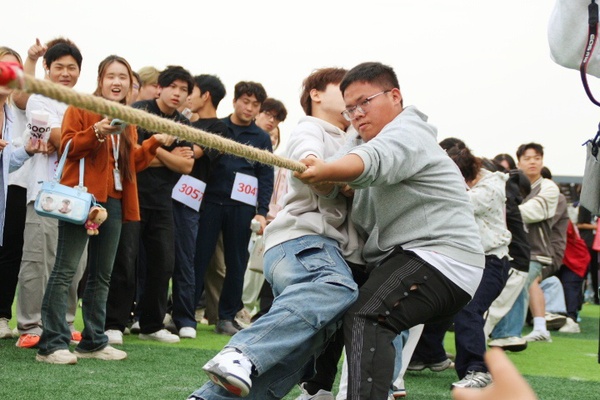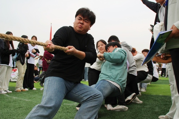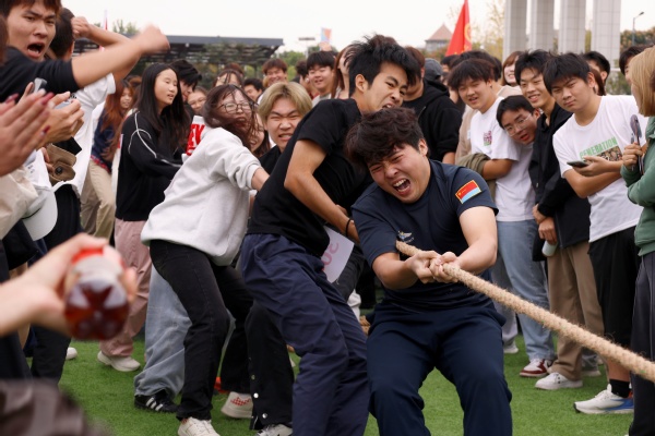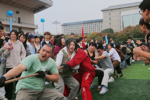 在学生混合组拔河比赛中,经济与商务外语学院代表队凭借出色表现勇夺桂冠,赛后,团队负责人、来自金融学专业的学生林子拓表示:“能够夺冠,我们感到非常激动,这是大家共同努力的结果。平时训练中的每一滴汗水,每一次配合,我们都看在眼里,也坚信付出终有回报。拔河是一项极其注重团队协作的运动,所以我相信只要我们重心保持在一起,劲往一处使,全员凝聚成一股绳,就没有克服不了的困难。”