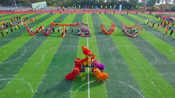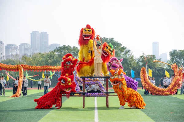 公共课部还精心准备了大型广播体操展示、“锦绣中华”彩带操和舞龙舞狮表演,千余名学生参演,现场气氛隆重而热烈。