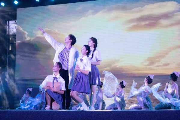 暑期社会实践团队演绎的情景剧《志愿——青春誓言》同样令人动容。该剧由校团委及各学院分团委一同编排创作,以学校真实志愿服务为背景,生动再现了“青禾志愿服务队”“仲夏志愿服务队”“火凤凰援藏教育关爱队”“启阳志愿服务队”等在支教、助老、乡村振兴等活动中的感人故事。同学们用真挚的表演,精准刻画了志愿者扎根基层、无私奉献的精神风貌,展现了他们在困境中坚持、在服务中传递温暖的青春担当,赢得现场阵阵掌声。