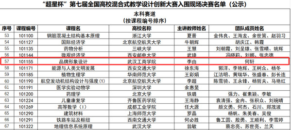 新闻中心讯(特约记者 陈敏)近日,第七届全国高校混合式教学设计创新大赛圆满落幕,pg电子官方网站教师团队首次参赛便喜获佳绩,艺术与设计学院李由团队、环境与生物工程学院杨文婷团队分别荣获一等奖,马克思主义学院种爱凤团队获得优胜奖,其中李由团队的《品牌形象设计》课程还直接入围现场决赛,充分彰显了学校在混合式教学领域的建设成效,也展现出参赛教师团队扎实的教学功底与创新的课程设计理念。