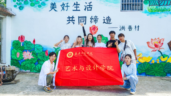 龚欣怡:最难忘的是去年暑假参加学院组织的“三下乡”社会实践活动,去湖北荆州洪湖做墙绘改造,发挥专业所长参与创意设计与绘制执行。我们先与村干部、村民沟通,结合洪湖水乡风貌、渔家民俗和农耕文化,融入“共同缔造”理念,设计出既有观赏性又有温度的墙绘方案,涵盖村民生活场景、邻里互助画面及对洪湖赤卫队革命精神的宣扬。绘制时,我们克服夏日酷暑、墙面不平整、颜料易脱落等问题,还带动村民参与,老人讲故事,小孩递工具,大家齐心完成作品。最后那些斑驳的老墙变得鲜亮起来,成了村里的一道风景。看到村民的笑容,我第一次真切地感受到:数字媒体艺术,不只存在于屏幕上,它也可以落地在乡村,传递美好、凝聚共识。那种用专业服务乡村的成就感,是任何奖项都无法替代的。