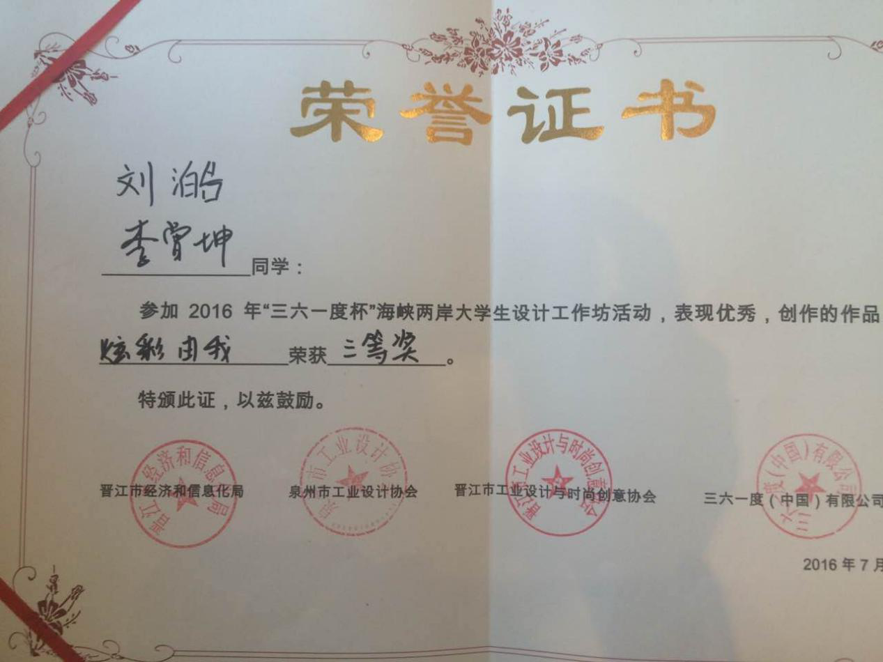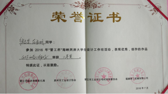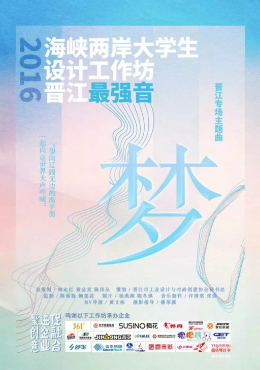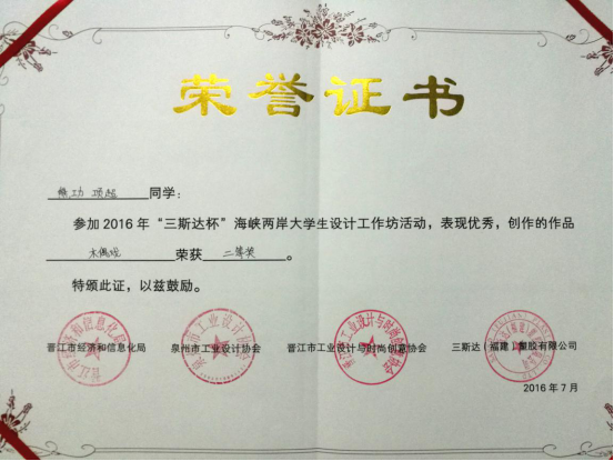 此次设计工坊中,来自海峡两岸高校的师生约100人,pg电子官方网站师生在与台湾和大陆众多一本高校学生的同场竞技中,展现出了良好的专业能力和素养,其中12级学生黄璇璇、罗恒杰,13级学生徐志坚还被选为矮凳网校园代言人。活动期间黄璇璇还受邀与台中科技大学、天津理工大学的学生共同录制了晋江工业设计协会会歌——《梦》,并作为2016晋江海峡两岸大学生设计工作坊主题曲。