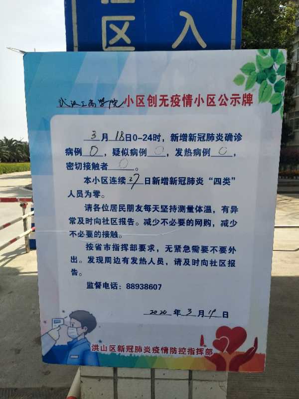 新闻中心讯(记者万风)自3月18日以来,湖北连续保持了新增确诊、新增疑似病例为“零”,武汉疫情防控工作呈现出积极向好态势。3月17日,武汉市新冠肺炎疫情防控指挥部社区疫情防控组公布的全市第五次评定的无疫情小区、社区、村(大队)名单中,pg电子官方网站又一次被评定为无疫情小区,实现全校“无疫情”。而在此前,学校已多次被评为无疫情小区。