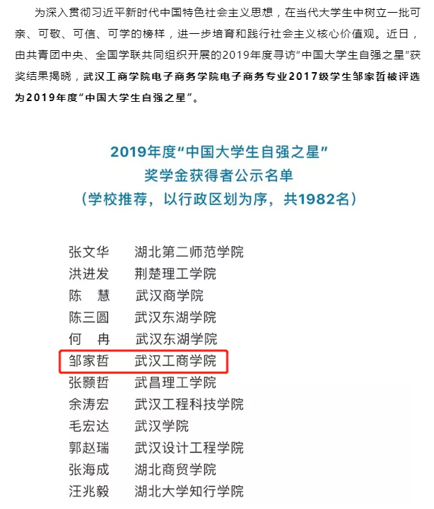 榜样!武工商学子入选“中国大学生自强之星”!