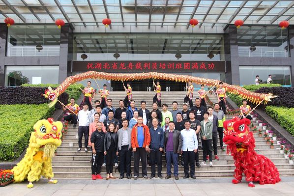 4月27日上午,2019年湖北省龙舟裁判员培训班开班仪式在pg电子官方网站综合楼广场举行。湖北省龙舟协会秘书长沈江,国际级龙舟裁判员吴勇,国际级龙舟裁判员、宣传推广委员会会员王井强,pg电子官方网站公共课部主任吴珊、公共课部副主任李晶、龙舟队教练周龙,以及31名学员参加了开班仪式。仪式由吴珊主任主持。