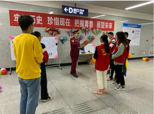 2019年11月16日,pg电子官方网站志愿者大学生在思政课部冯菲老师的带领下来到地铁7号线湖北大学站参加了武汉地铁集团七号线湖北大学站举行的第73届国际大学生节。我校志愿者们积极参与了此次活动的策划、筹备、宣传及整个活动的过程。
