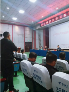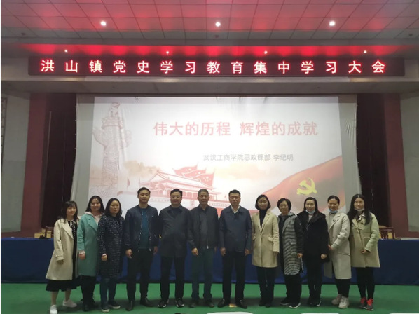 思政课部李纪明教授以“伟大的历程,辉煌的成就”为主题向洪山镇党员干部讲述了党的一百年光辉历史。洪山镇全体行政干部,各(村)居委会、镇直单位(部门)“两委”班子成员参与了此次党史学习教育。