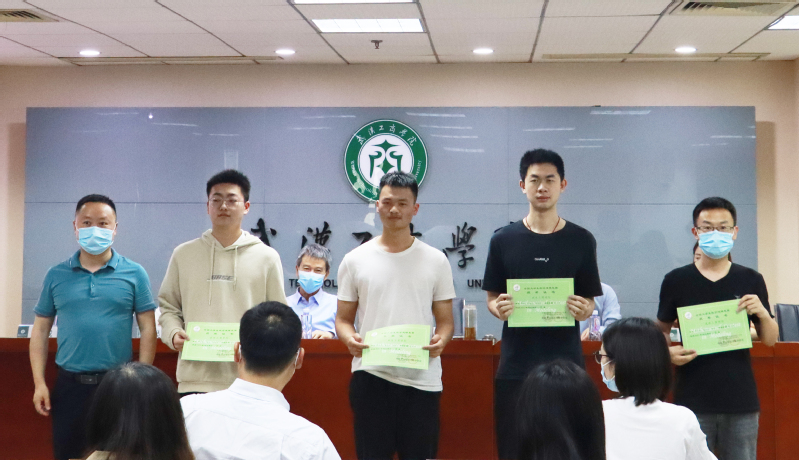 朱威书记首先介绍了学校数学建模团队参加历年数模竞赛取得的成绩。“从2006年到2021年,学校学生参加全国大学生数学建模竞赛,荣获国家一等奖3项(本科组1项、专科组2项),二等奖6项,省级奖项57项;2018年学校学生走出国门,在美国大学生数学建模竞赛大放异彩,获得一等奖1项、二等奖3项。”随后,他宣读了“2021年全国大学生数学建模竞赛”学校获奖名单:吴滔、王弘丽、屠霜茹荣获“全国一等奖”;李钰剑、陈彦林、陈意获得“湖北省一等奖”;徐清园、周宇、查妤婕等学生获得“湖北省三等奖”;程斌老师荣获“优秀组织奖”。孔建益校长、张俊副校长和教务部副部长陈涛为获奖师生颁奖。