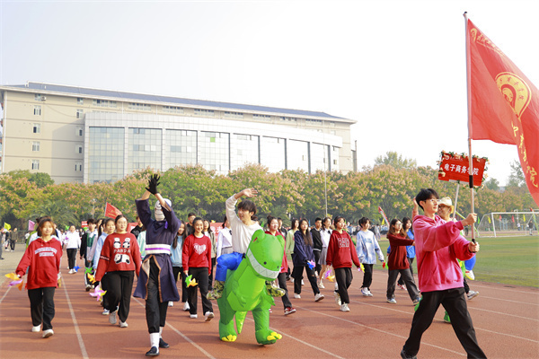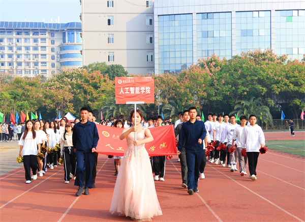 来自各学院的学生以及教职工代表队身着精心设计的服装依次入场,他们英姿飒爽、精神饱满,迈着铿锵有力的步伐来到主席台前,通过交谊舞、啦啦操、现代舞等各具特色的表演展现各自的风采。
