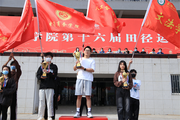 图为经外学院、物流学院、人工智能学院、环生学院、继教学院荣获体育道德风尚奖 摄影:江秋艳