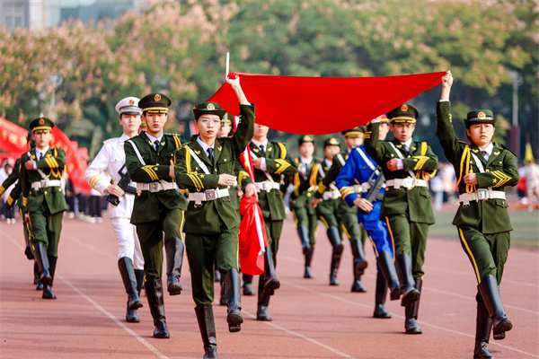 图为国旗护卫队正在升旗 摄影:王梓喆