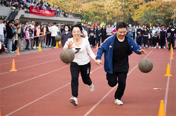 图为教职工螃蟹运球比赛现场 摄影:黄惠茹