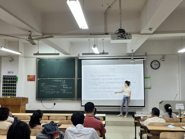 在磨课过程中,所有教师都认真听课,并借鉴其他教师教学内容、教学方法、教学课件等方面的优点和不足进行了细致的点评。樊艮副教授在点评中指出,各位老师在教学语言上,要进一步凝练,避免过多口头禅;江小勤副教授建议:在教学设计上理论讲解建议不超过二十分钟,以讲练相结合的方式让学生进一步掌握重难点;何逊梅老师建议:在PPT中例题设计须由易到难展开,让学生不断思考、循序渐进。