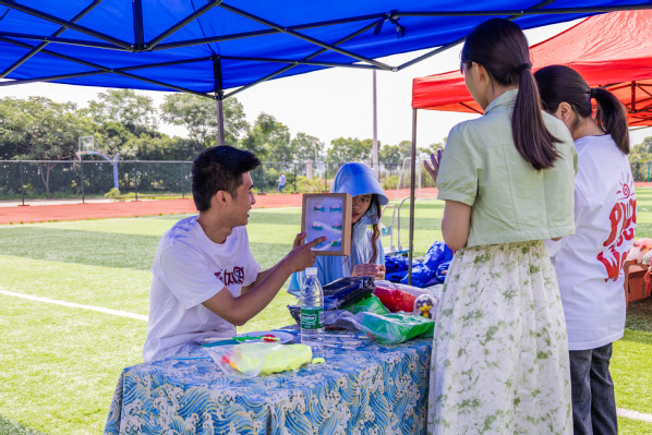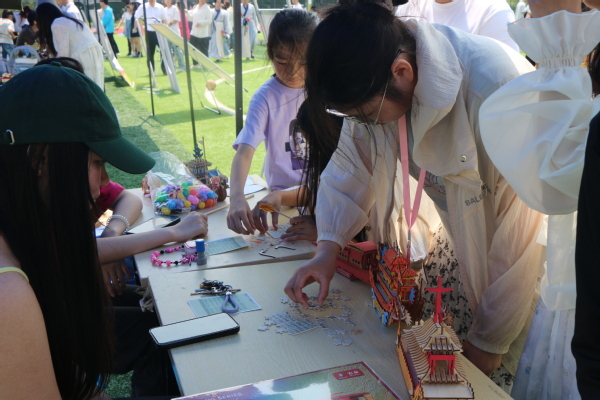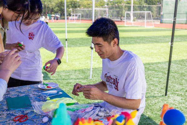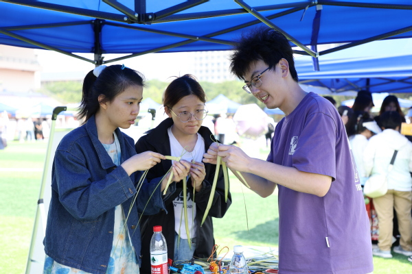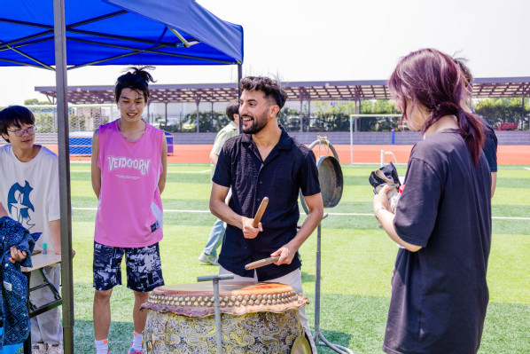 活动还吸引了学校不少留学生的积极参与,来自尼泊尔的留学生尼锐与来自伊拉克的海德、义博3人一起组团参加了旱地龙舟比赛,表示既新奇又充满挑战。尼锐说道:“这比普通赛跑有趣多了,我在尼泊尔从没有参加过这样的活动。”海德也表示这是一次特别开心的体验。“提着龙舟跑比想象中累,虽然不用下水,但团队配合很重要,我们中途差点摔倒。”他们3人还依次前往各个活动展位前“打卡”,感受端午节的独特魅力和中华传统文化的博大精深。