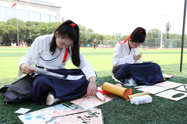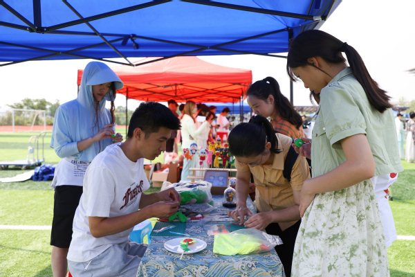 开幕式结束后,非遗主题活动、旱地龙舟竞赛等文化活动,以及武术、舞龙舞狮、国风舞、汉服走秀等表演相继在学校田径场上火热开展,吸引了诸多市民和师生围观和参加。李瑞刚、喻政森、韩恒涛、孟秋会4位非遗传承人进校,为大家科普与展示了糖画、草编、面人、剪纸等传统民间手工艺术,广大市民和师生还在现场体验了射五毒、彩绘鸭蛋、漆扇、蹴鞠、皮影戏、太极拳、竹编、象棋、投壶、制作香囊与五彩绳、组装龙舟模型、写对联等丰富多彩的传统文化,沉浸式提前共度端午佳节。
