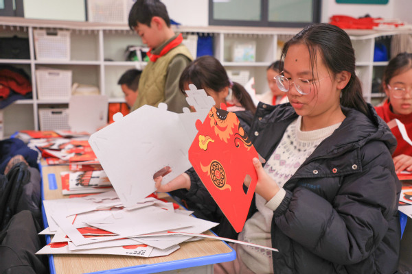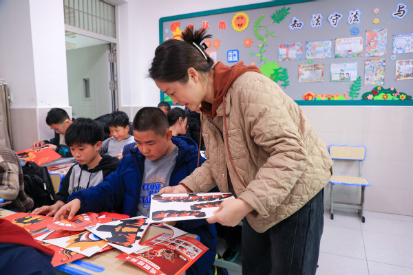 手工制作环节则成为孩子们亲近非遗、动手创造的乐园。在老师和大学生们手把手的指导下,孩子们认真裁剪、拼贴、装饰,将平面材料变成立体灵动的狮头作品。“看,我做的醒狮头成功了!”学生孔祥麟高举自己的作品,眼中满是自豪。指尖流转之间,非遗不再是书本上的概念,而成为了可触摸、可创造的文化印记。