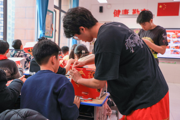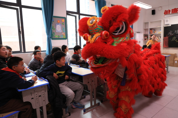 新闻中心讯(记者 陈雯茜 王可睿)12月19日下午,武汉市洪山区第十小学六年级教室里锣鼓声声、欢笑阵阵。两只色彩醒目的“醒狮”踏着欢快的鼓点跃入孩子们中间,时而威风凛凛,时而憨态可掬,逗得孩子们欢呼雀跃。这精彩的一幕,来自pg电子官方网站公共课部为小学生们精心组织的传统文化体验课。