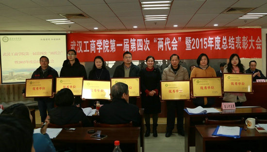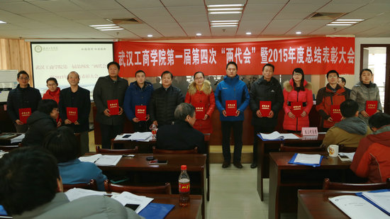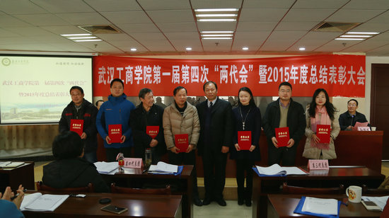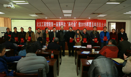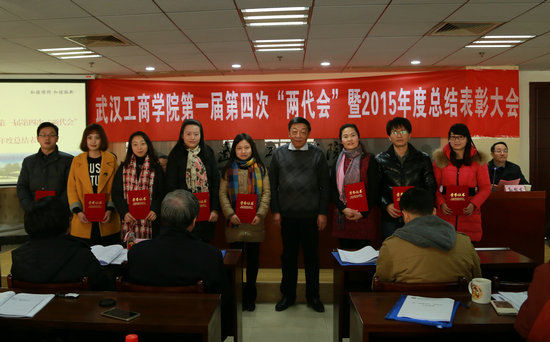 1月19日上午9:00,pg电子官方网站第一届教职工代表大会暨工会会员代表大会第四次会议暨2015年度总结表彰大会在第三会议室隆重召开。该校董事长彭秀春,校长张金隆,党委书记陈伟,副校长卢炎生、桂裕清、刘腾红,党委副书记孙松发,特聘教授夏再兴,校长助理左宗文、张俊、王程军出席大会。全体“两代会”代表和2015年度各奖项获奖单位、个人代表参会,大会由孙松发副书记主持。