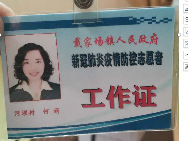 月21日,何娟老师度过隔离期就和她的爱人迫不及待地向所在湖北省洪湖市戴家场镇河坝村报到,他们成为新冠肺炎疫情防控志愿者。此后她为全村1489名村民和758名返乡人员提供体温检测,负责数据统报、诊所消毒和食品药品代购等工作。