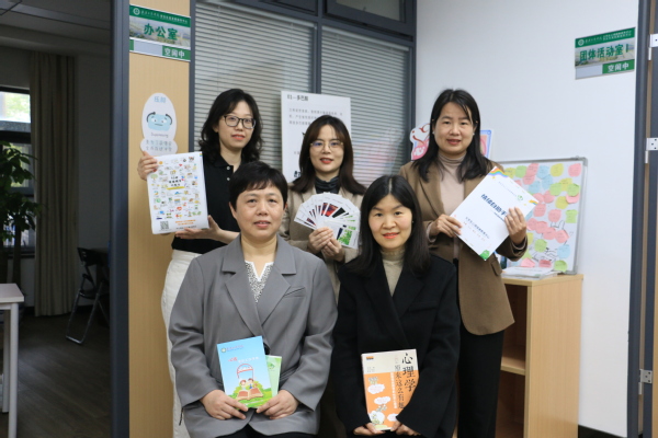 图为团队老师们拿着制作的各类心理健康知识卡片 摄影:孙欢欢