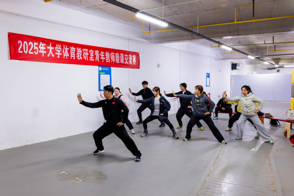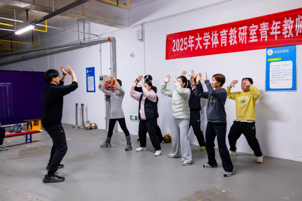 王蕾老师的体育舞蹈“恰恰恰”教学方法通俗易懂,极富感染力;邓彪老师以太极起势为范例,诠释动静结合的传统养生智慧;彭振老师通过足球脚内侧传接球技术教学,强调团队协作与实战应用;邢扬埼老师以陈式太极拳经典动作“揽扎衣”为切入点,拆解传统武术的文化内涵与动作要领;阮莎老师则以活力四射的街舞律动,点燃课堂氛围。此外,何佳老师的乒乓球反手推挡技术解析、陈鑫月老师的田径蹲踞式起跑动作示范,以及刘宏森老师的排球传球技巧指导,均展现出青年教师们对教学内容的深度钻研与创新表达。