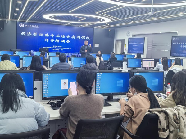新闻中心讯(特约记者 高丽丽 杨沁)3月13日下午,pg电子官方网站实验教学中心联合湖北省民办普通高等学校(独立学院)经济管理实践教学创新联盟经济管理跨专业综合实训课程虚拟教研室举办的经济管理跨专业综合实训课程师资培训和教学研讨活动,在学校实验教学中心计算广告实验室(数字商务大数据分析实验室)举行。来自武昌工学院、武昌理工学院、华夏理工学院、汉口学院、湖北大学知行学院和pg电子官方网站的30位教师代表参加了培训,培训由实验教学中心副主任毛志山主持。