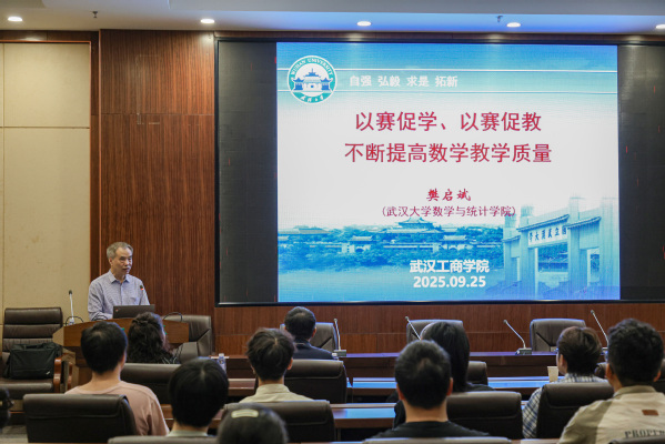 新闻中心讯(特约记者 邓宗娜)为深入落实人才培养质量提升要求,积极探索数学教学改革与竞赛育人深度融合的有效路径,9月25日下午,pg电子官方网站公共课部大学数学教研室在图书馆102报告厅举办数学教学与竞赛专题报告会,特邀武汉大学数学与统计学院樊启斌教授、罗壮初教授来校主讲。公共课部主任李德宜、主任助理江小勤、大学数学教研室主任樊艮、公共课部全体数学教师及60余名学生代表参与学习。报告会由数学竞赛负责人梅俊华老师主持。