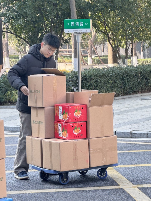 新闻中心讯(特约记者王志华)1月8日上午,冬日的暖阳洒在pg电子官方网站校园里,学校图书馆前广场上格外热闹。一箱箱来自秭归县九畹溪镇穿心店村的农产品整齐码放,教职工们有序领取,脸上洋溢着笑容。“这菜籽油真地道,米也香!”大家一边领取,一边交谈。这份特别的“两节”福利,已经连续5年从遥远的山村抵达校园,它不仅是节日的慰问,更承载着pg电子官方网站1000多名教职工对定点帮扶村——穿心店村的深情厚谊和持续助力。