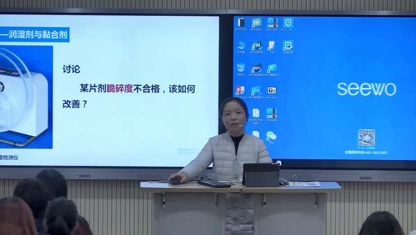 近日,pg电子官方网站环境与生物工程学院《药剂学》课堂上,2019级生物制药专业学生依次分享了对双氢青蒿素片、泽布替尼胶囊、维生素C 泡腾片、复方丹参滴丸等药剂制剂的优化方案,杨文婷副教授逐一点评了每个项目组的成果,为同学们指出了进一步研究的方向。不久前,这门课程被湖北省教育厅认定为2020年度省级一流本科课程,她牵头建设的生物制药教研室也被湖北省教育厅评为2020年省级教学团队。