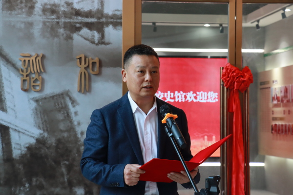 巴能军董事长和孔建益校长共同为校史馆开馆揭牌。