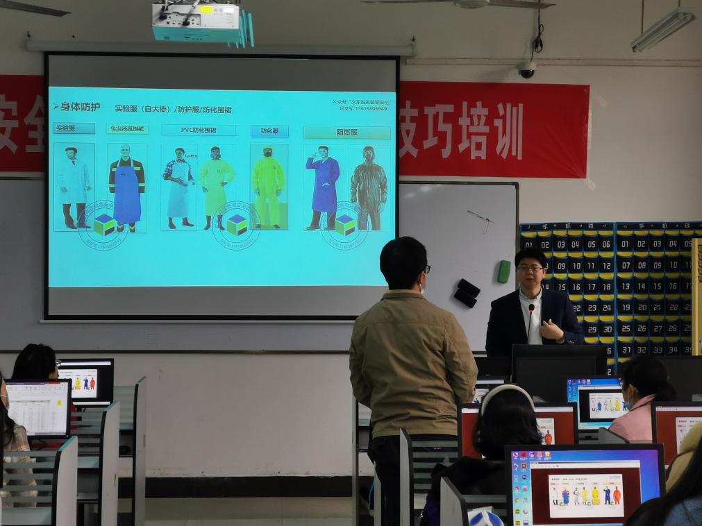 此次培训活动由实验教学中心主办,环境与生物工程学院承办。包含“实验室安全事故应急处置流程与技巧”、“实验室化学品泄漏事故应急演练”和“应急冲淋和洗眼装置使用演练”三个主题。培训会上,屈文军老师首先通过实验室安全事故典型案例的介绍,让同学们认识到学习安全知识,增强安全意识,掌握安全技能的重要性。其次,围绕“实验室化学品泄漏事故应急处置流程与技巧”、“实验室化学品身体沾染事故应急处置”、“应急冲淋和洗眼装置正确使用”等方面,向师生详细介绍了实验室安全知识及事故的应急处置。