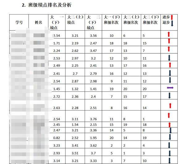 图为“开学第一课”班主任针对班级学生成绩分析截图