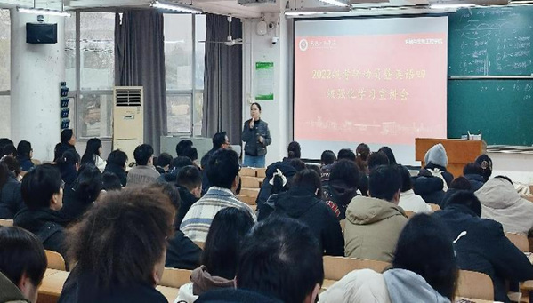 为激发2022级学生考研热情,明确学习目标,同时加强英语四级备考指导,环生学院于2025年3月13日下午在综合楼307召开了考研动员暨英语四级强化学习宣讲会。环生学院常务副院长柯斌清、副院长杨文婷、22级辅导员李杨及2022级全体学生参加了此次会议。会议由环生学院党总支副书记王强主持。