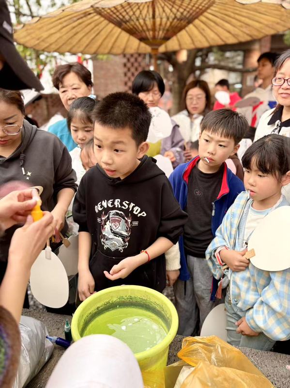 在漆扇制作区,小朋友们充分发挥自己的想象力,用五彩的颜料在扇面上勾勒出各种图案。有的画着可爱的小动物,有的画着美丽的花朵,还有的画着梦幻的星空。一把把普通的扇子在孩子们的笔下变成了独一无二的艺术品,不仅展现了他们的绘画天赋,也让传统漆扇艺术焕发出新的活力。