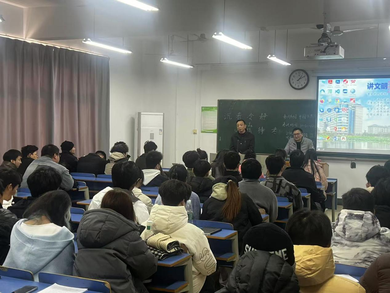 2025年1月6日上午,环生学院在外语楼418教室召开了针对2025届毕业生的论文开题与实习答辩暨就业再动员大会。出席会议的有环生学院常务副院长柯斌清及党总支副书记王强。