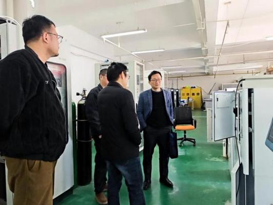 在吕飞经理的陪同下,王强副书记一行实地参观了公司的环保仪器研发中心、标准化实训车间及数字化管理平台,详细了解了企业在环保设备智能化升级、环境监测标准化服务等方面的技术成果,以及“数字化平台 + 专业教材 + 标准化体系” 的三维发展布局。