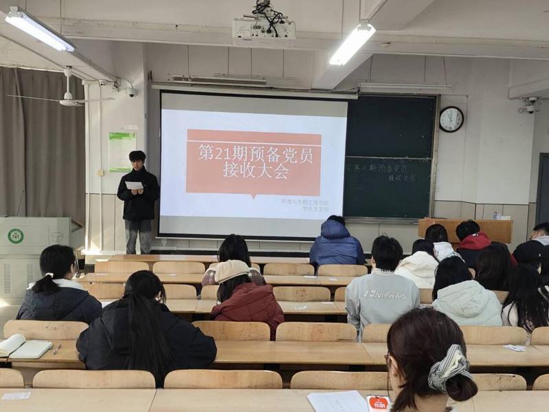2025年12月16日,环生学院学生党支部在弘德楼206室隆重举行预备党员接受大会。会议旨在吸纳新鲜血液、总结过往工作、凝聚奋进力量。环生学院党总支副书记王强出席会议,学生党支部书记王雯瑄老师主持会议,全体学生党员、支部委员代表等参会。