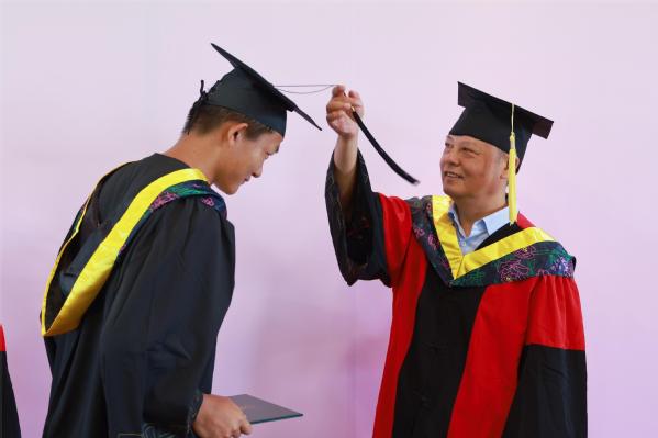 图为孔建益校长为学生拨穗