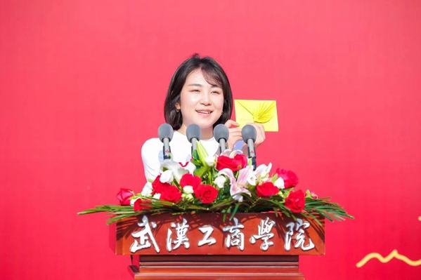 艺术与设计学院教师肖雪韵作为教师代表发言。她深感欣慰地说,很高兴能见证同学们在大学阶段的每一次成长,并寄语毕业生,“请你们始终保持对知识的热爱,不断丰富自我,提升实力。希望你们有勇气接受改变、有勇气面对未知,无论你们走往何方、去往何处,始终坚信自己的信念,不忘初心、勇往直前。人生的舞台广阔无垠,我期待着你们在新的旅程中大放光彩,实现自我。”
