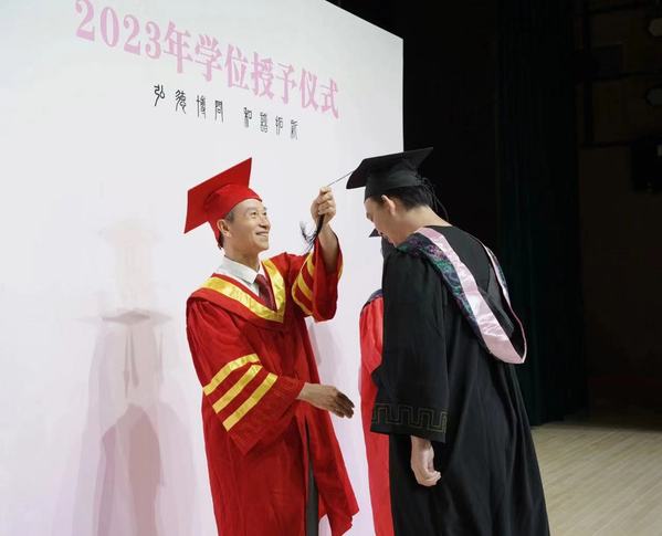 文法学院2023届毕业生明珂满怀不舍地说,“今天,有学业有成的欢喜,也有挥手告别的不舍。大学四年,我结识了很多良师益友,他们的鼓励和陪伴让我的校园生活更加丰富多彩,成长为更好的自己。祝愿武工商越办越好,我会带着母校和师长的祝福,保持热爱,奔赴下一个追梦之旅。”