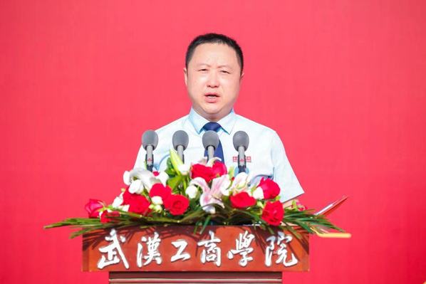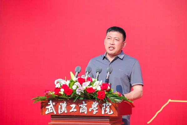 艺术与设计学院2023届毕业生李文豪的父亲李保龙作为家长代表发言。他感慨地说,“孩子大学四年逐渐褪去稚气变得成熟稳重,成为一名光荣的中共党员,同时顺利考取目标院校研究生,这一切离不开学校和老师孜孜不倦的教诲。希望同学们带着对母校的殷切期盼,弘扬‘武工商精神’,努力成长为对国家、社会有贡献的栋梁之才。”
