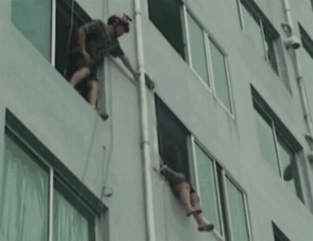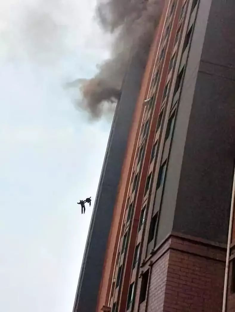消防员飞速扑向坠落点