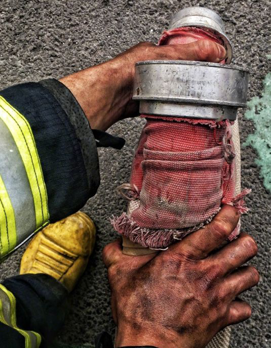这双手在烈火前握着水枪