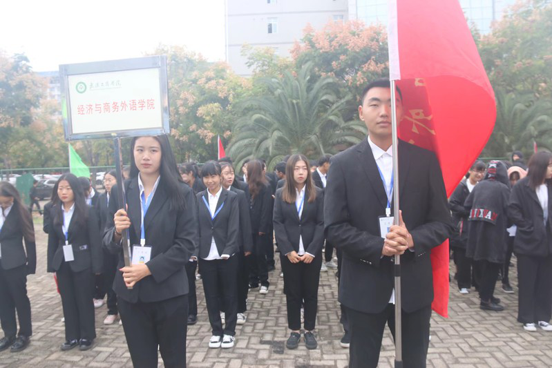 伴随着激昂澎湃的《运动员进行曲》,运动会入场式正式开始。在国旗护卫队的引领下,来自各学院的学生以及教职工代表队依次入场,大家迈着铿锵有力、矫健整齐的步伐,精神抖擞、昂首挺胸地从主席台前走过,接受学校领导的检阅,并通过各具特色的入场队列表演展现出师生的风采。经济与商务外语学院第二个上场,老师及学生会成员踏着整齐的步伐,朝主席台走来,学生们用激情的舞蹈表达对运动会的热情,展现着他们携手共进的决心和勇往直前的信念。