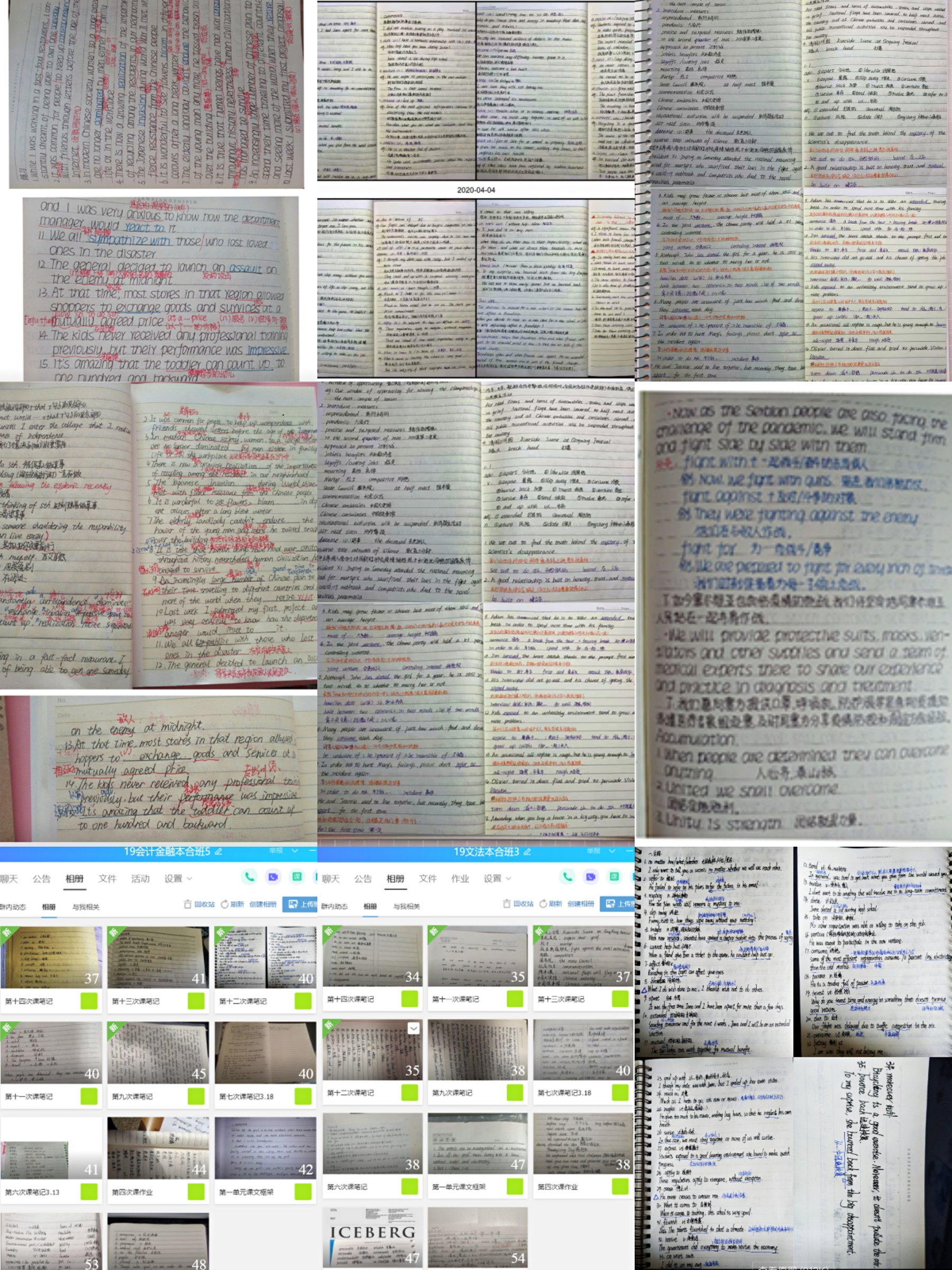 每次上课一开始,我会先明确本课主要教学内容;下课前,再用文字及时梳理和总结当堂内容并针对性地布置任务。如此,帮助学生逻辑串联本节课各知识小节点,也方便没及时跟上直播的同学补进课堂内容。每堂课后新建一个相册,要求学生将课堂笔记拍照,发到QQ相册,老师给优秀笔记点赞和评论,同学们共享互学。