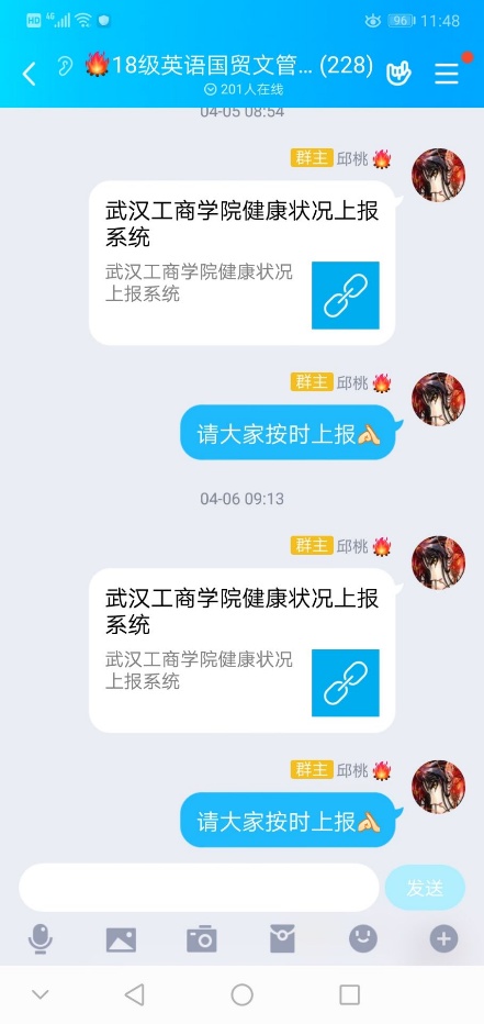 每天都提醒学生按时汇报健康数据。按时完成学校学院交代下来的任务,比如:“五四”评优、“劳动教育”、“安全教育”等。