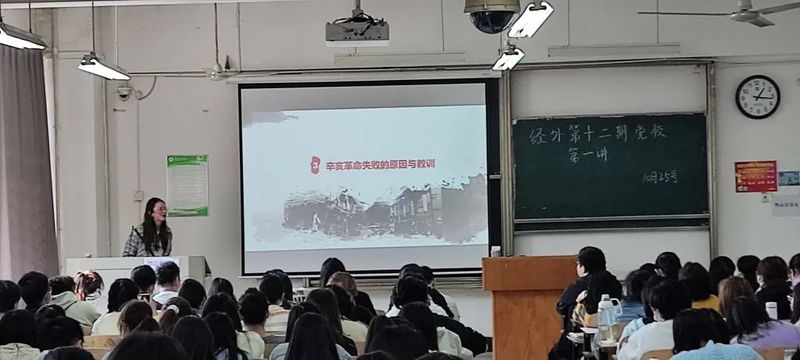 本次培训第一讲由公共课部思政课教师何晗老师主讲。来自经济与商务外语学院的一百多名学生在何晗老师的讲解下学习了“重温革命历史,勇担时代使命”为题的党校课程。
