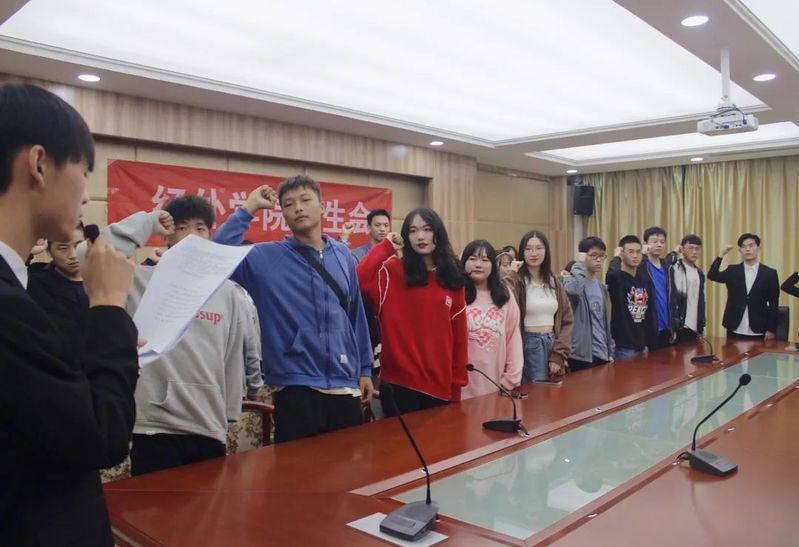 各部门干事发言结束后,秘书处部长苏鹏带领全体学生会成员宣读誓词。